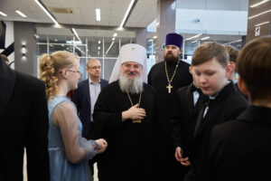 С приветственным словом к участникам встречи обратился митрополит Красноярский и Ачинский Никита. Затем образцовый детско-юношеский духовный хор «София» исполнил праздничное духовное песнопение.